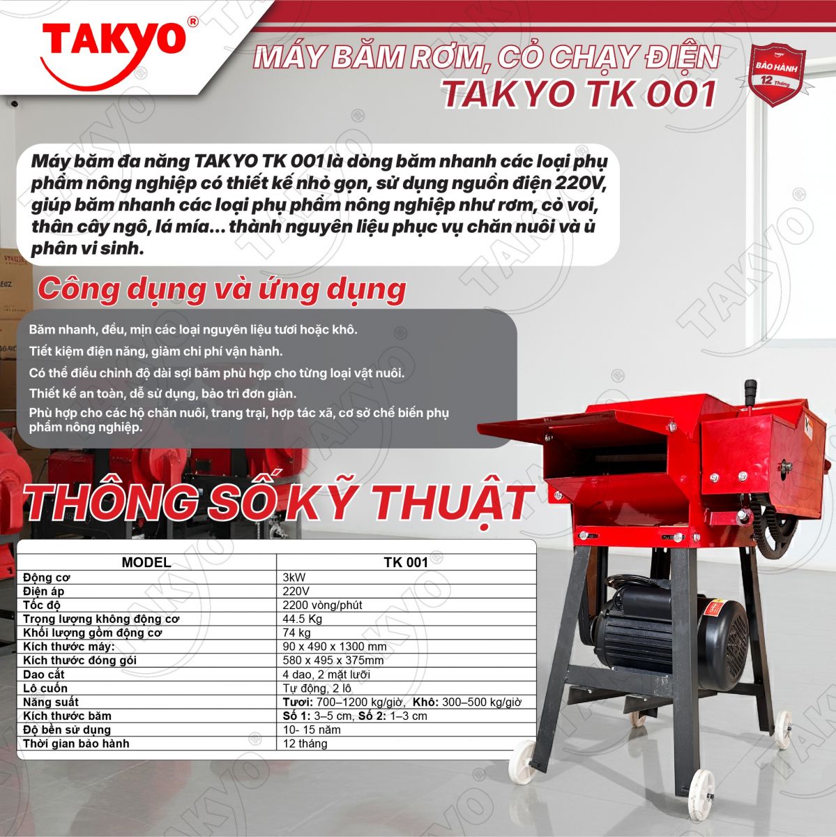 MÁY BĂM RƠM CỎ CHẠY ĐIỆN TAKYO TK 001