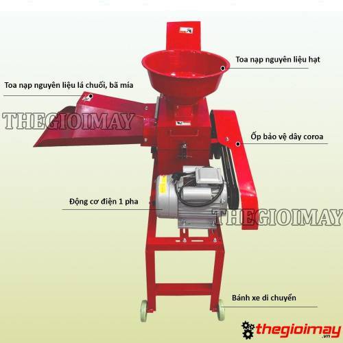 Tính năng: Băm các loại rau, cỏ, nghiền ngô cho gia súc, băm sơ dừa, bã mía, băm rơm, cành cây - làm thức ăn chăn nuôi - phân bón cho cây trồng