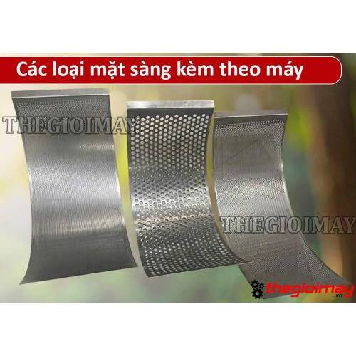 Sàng lưới của máy : 3 tấm sàng (2 mm, 3 mm, 10 mm)