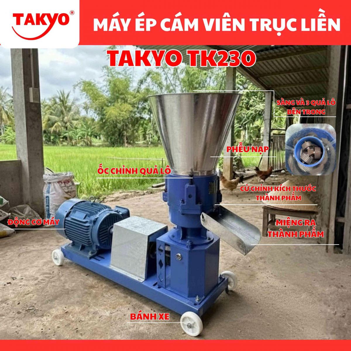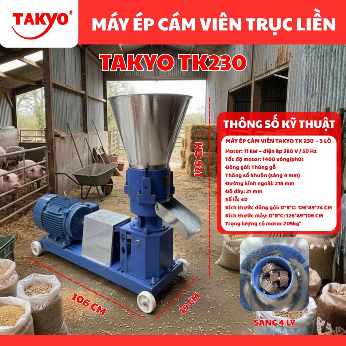 MÁY ÉP CÁM VIÊN TRỤC ĐỨNG TAKYO TK 230 INOX – 3 LÔ ÉP