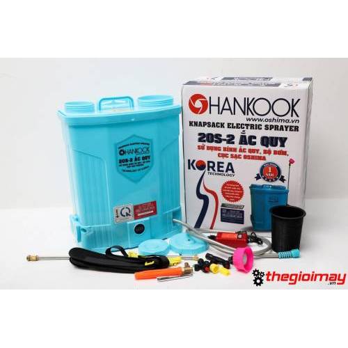 Máy phun thuốc trừ sâu, côn trùng điện HANKOOK 20S-ắc quy Xanh Bình ắc quy 12V8Ah