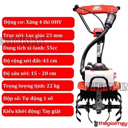 Độ rộng xới đất: 43cm